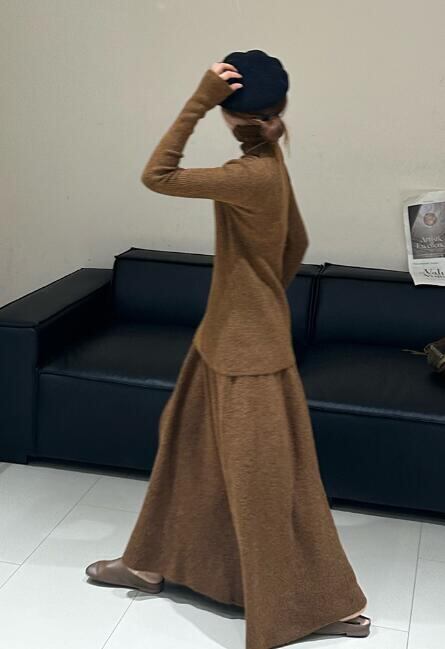 2024年INS 秋冬新作 気質 おしゃれ トップス ニットセーター+スカート セットアップ 4色