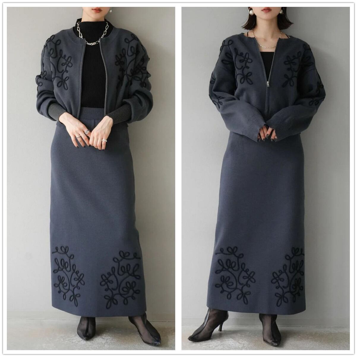 ニットトップス スカート セットアップ 上下セット レディース ロング丈スカート ボトムス カーディガン