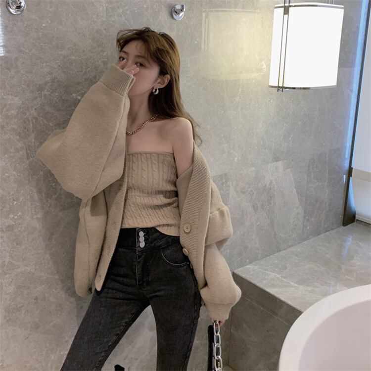 2024新年大感謝祭!激安セール セットアップ セーター コート レディース チューブトップ ニットトップス