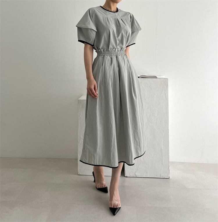 待望の再入荷です 韓国ファッション スカート セットアップパフスリーブ ロングスカート シャツ