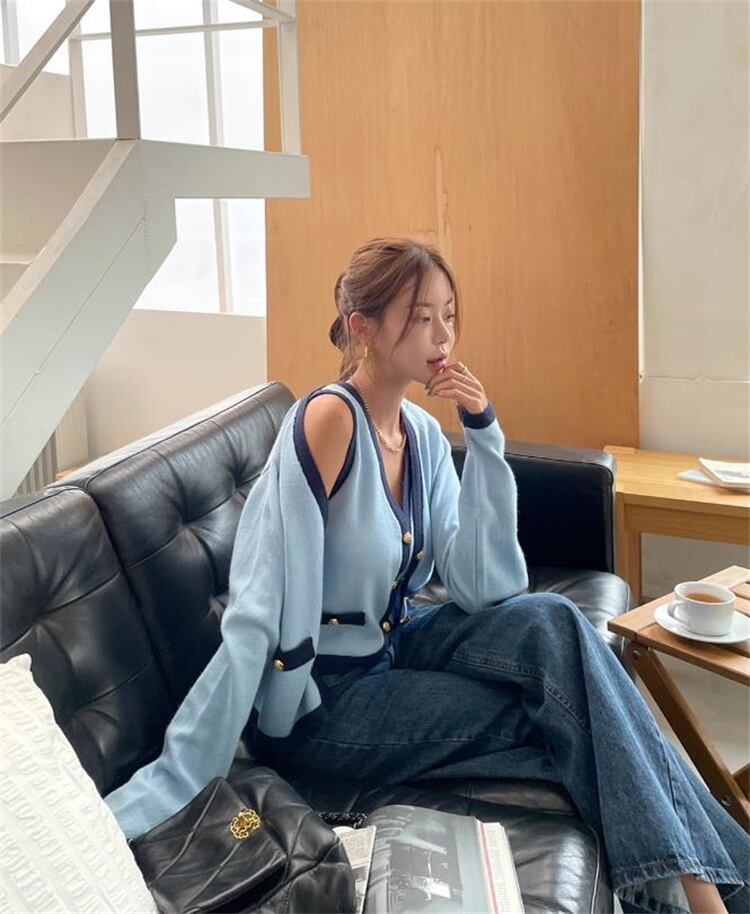 魅力を増すコツ カーディガン 気質 レトロ セットアップ Vネック タンクトップ ベスト おしゃれな 差し色