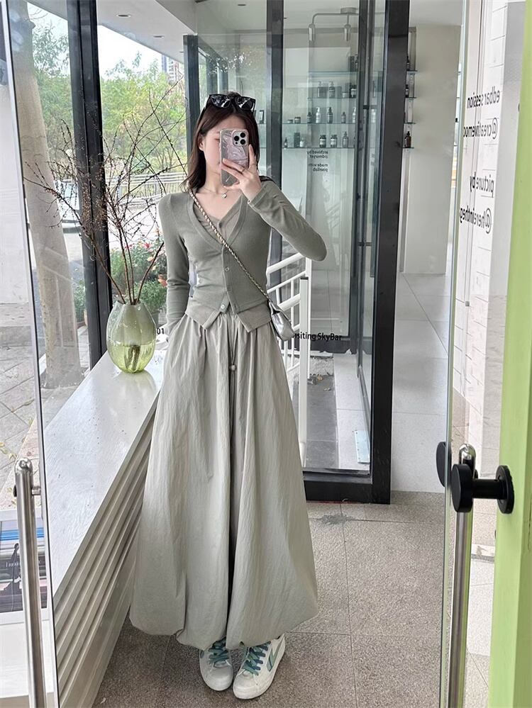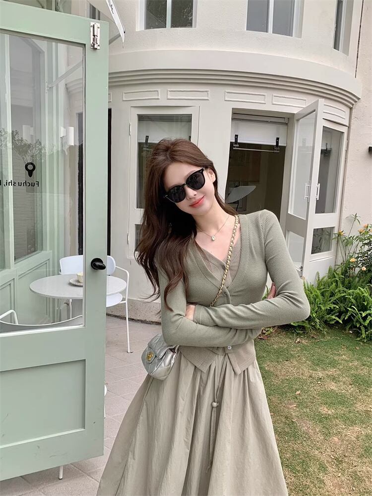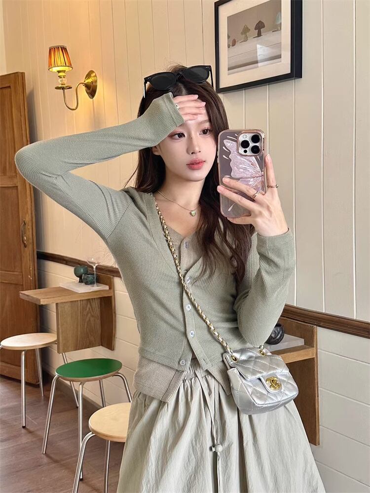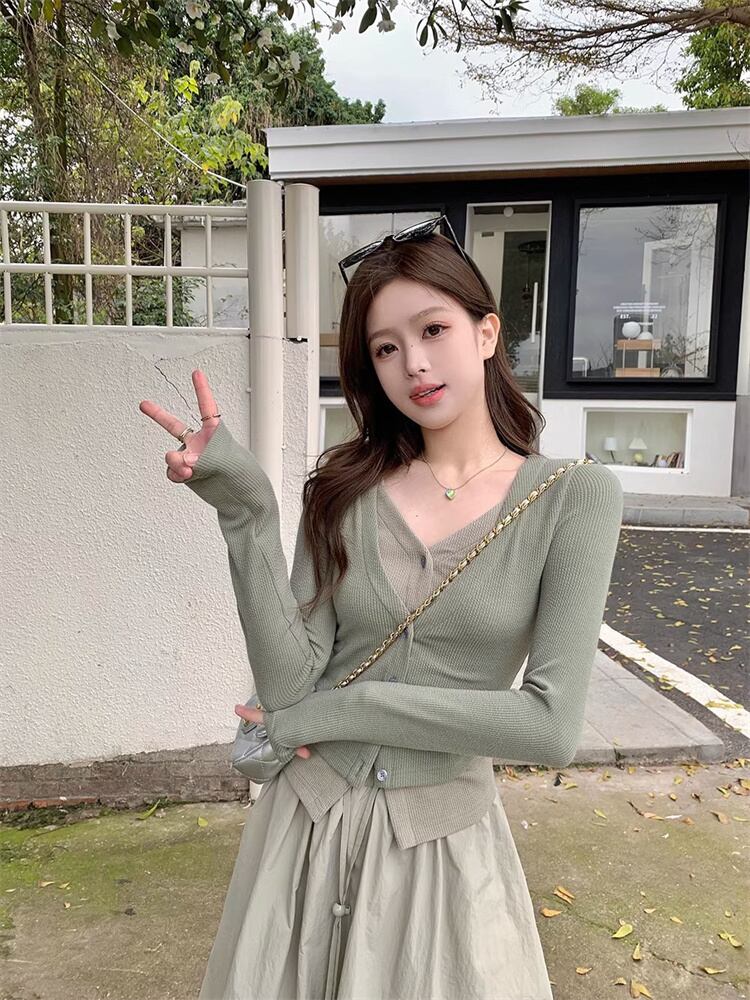 少しの甘さが大人っぽい 短めの上着 セットアップ ニットトップス フェイク2ピース カーディガン