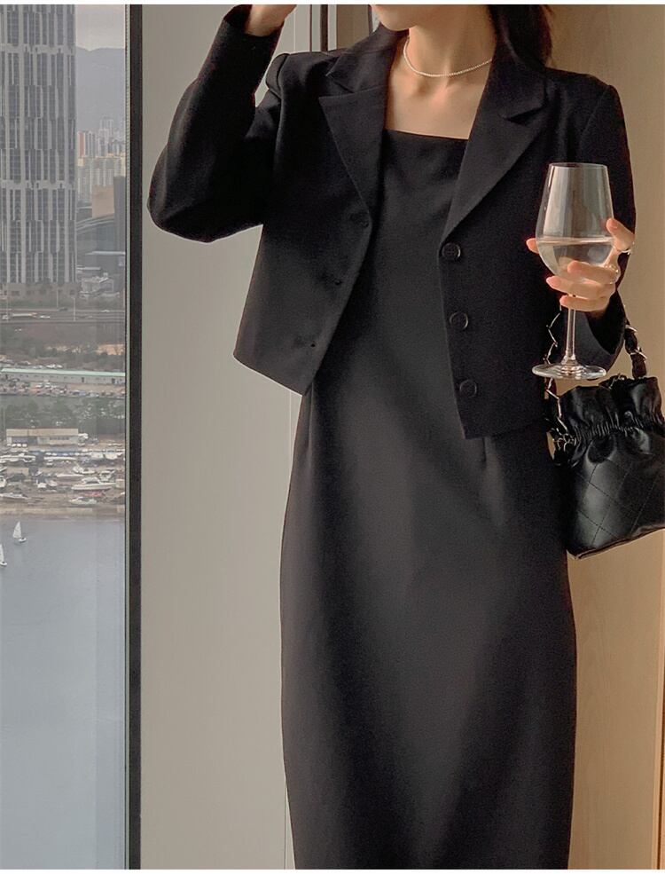 柔らかな雰囲気 キャミワンピース ロングスカート 気質 スリム スーツコート セットアップ エレガント