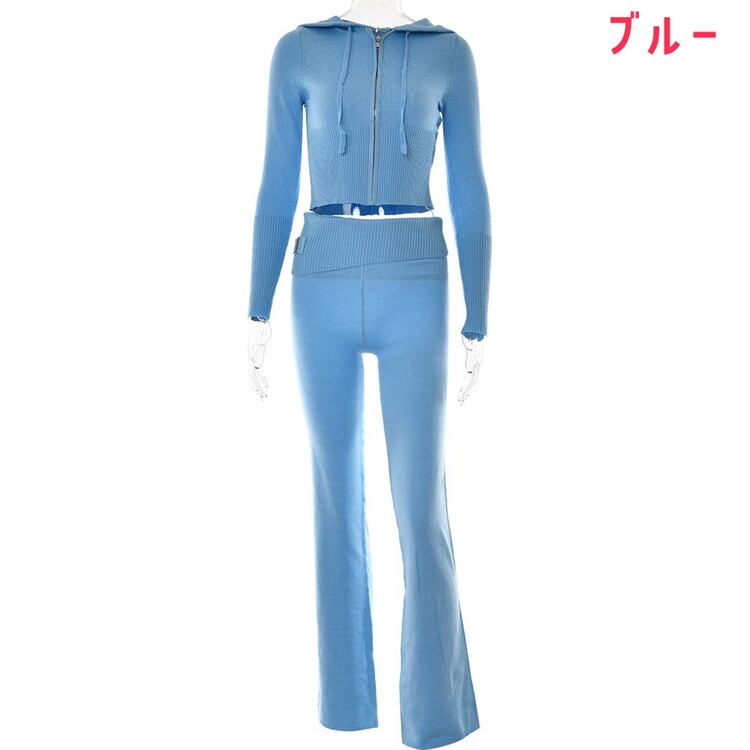 いい印象を与える 早い者勝ち ニットトップス スラックス 2点セット フード付き セットアップ