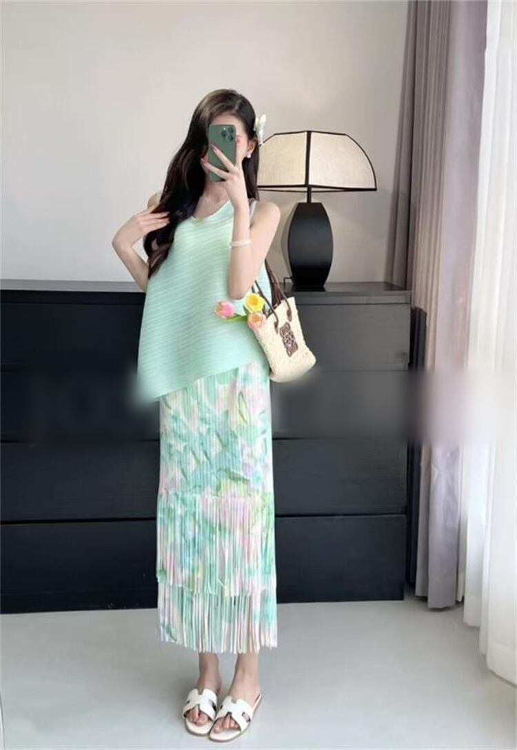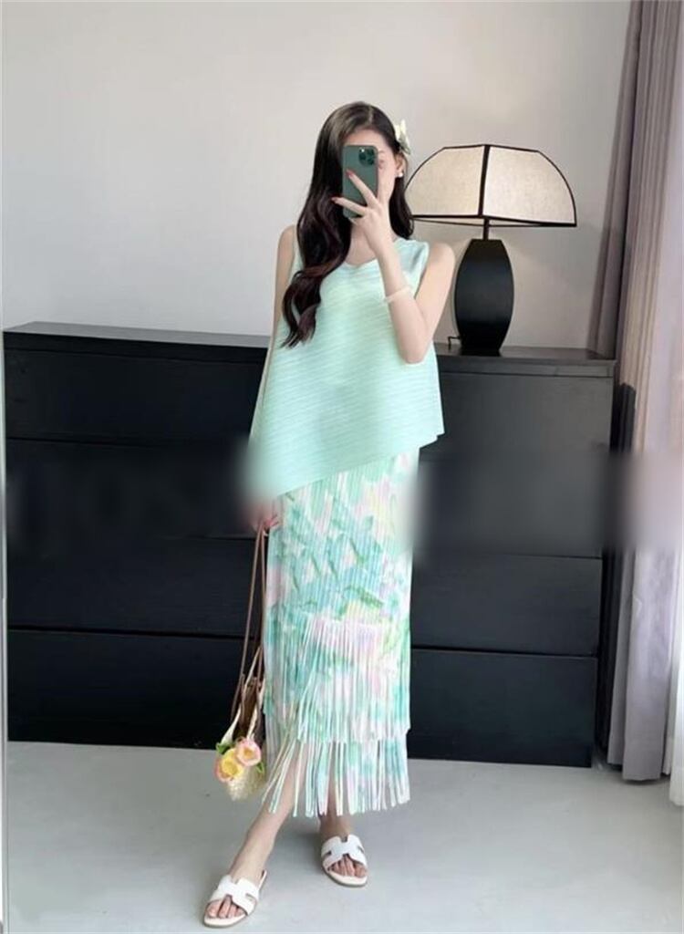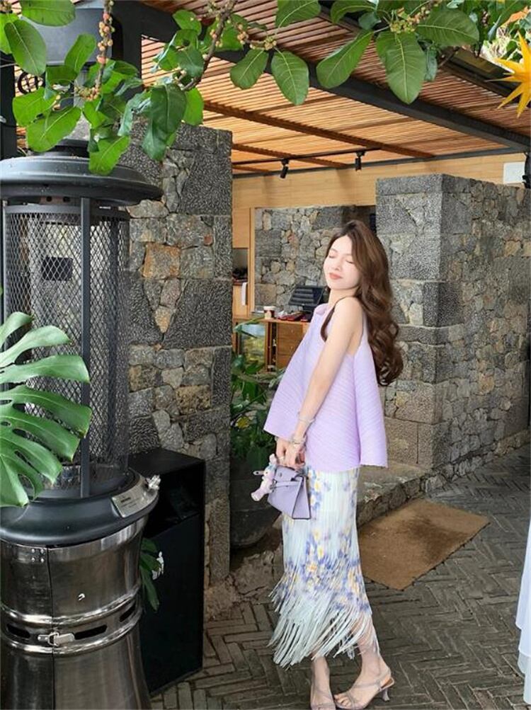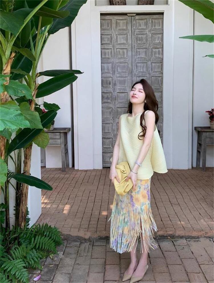 人気沸騰 女性らしいエレガントスタイル ノースリーブ+フリンジロングスカートセットアップ