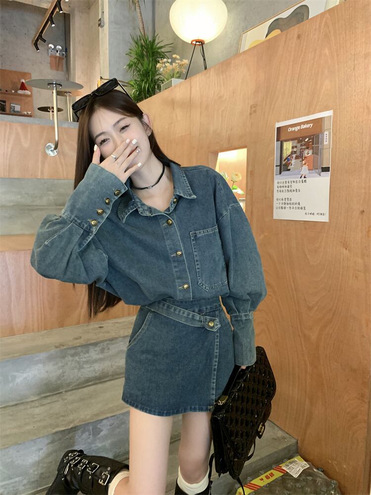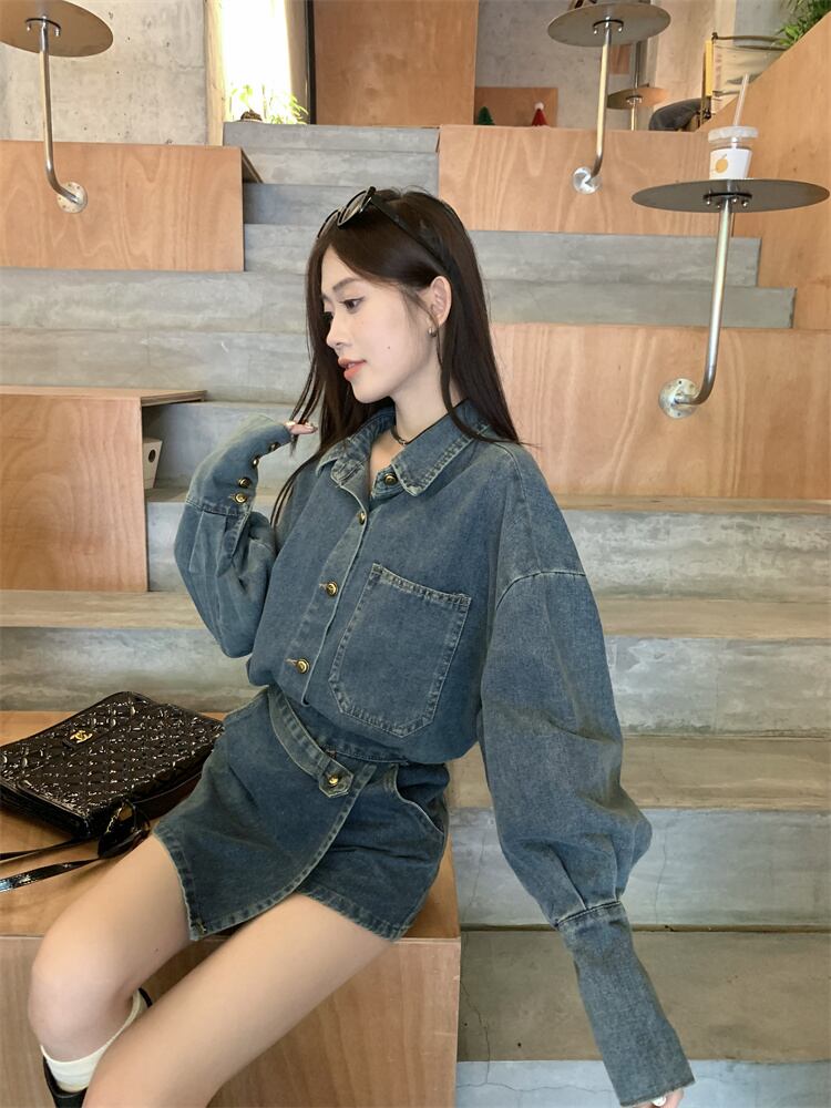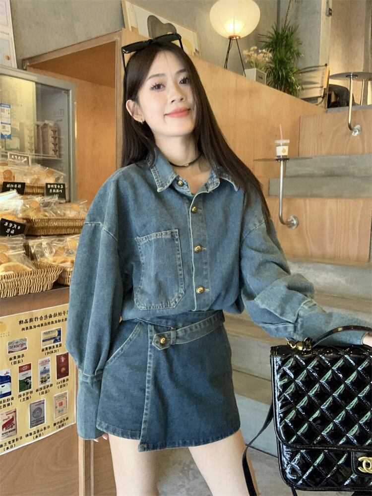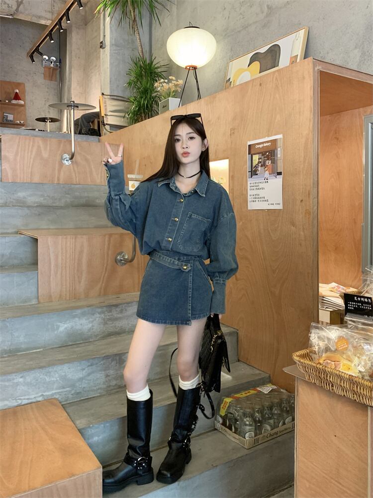 スタイルアップ効果も セットアップ ミニスカート 長袖 2024新作 デニムジャケット デニムコート
