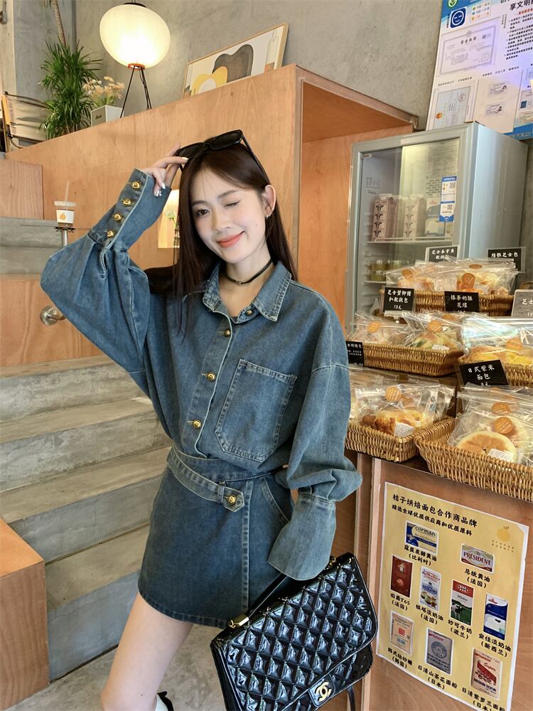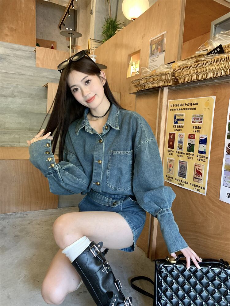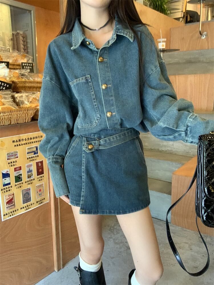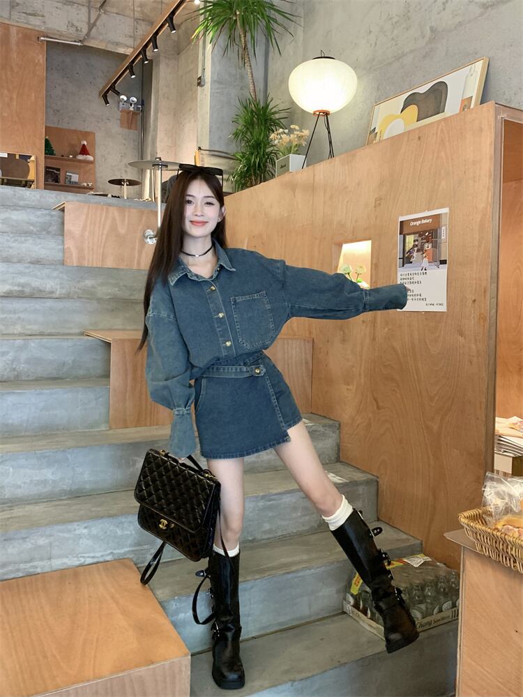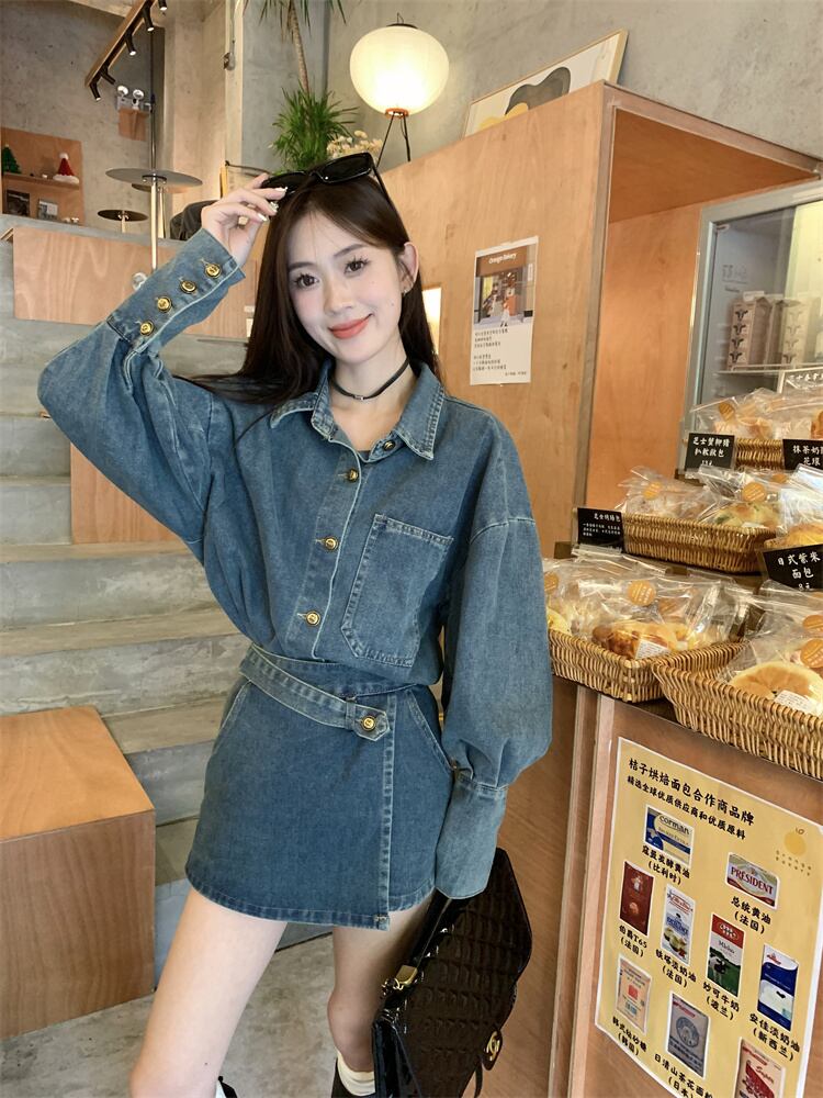 清純で人をうっとりさせる 韓国ファッション デニムジャケット セットアップ ミニスカート 長袖