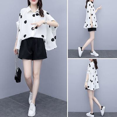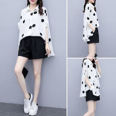 セットアップ レディース 春夏 半袖シフォンブラウス ショット丈パンツ オシャレセットアップ ドルマ