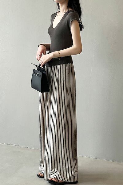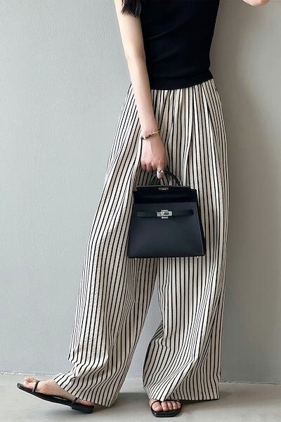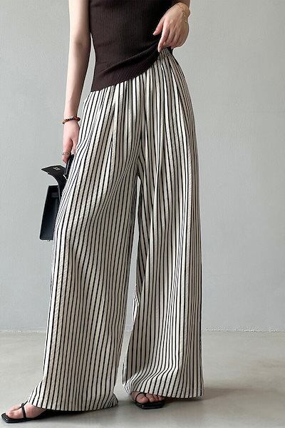 超人気 2025新登場 ワイドパンツ レディース 簡約 文芸風 ストライプ カジュアルパンツ オーバーサイズ ガウチョパンツ 体型カバー 薄手 着痩せ 大きいサイズ ホワイト ロングパンツ 春 夏 M