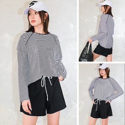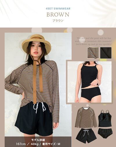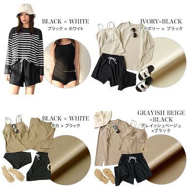 OSYAREVO【国内発送】 水着 レディース 体系カバー 冬秋春夏 水着 レディース 体型カバー タンキニ シンプル ラッシュガード 長袖シャツ ショートパンツ 4点セット ビキニ セパレート キャミ水着 20代