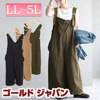 ゴールドジャパン大きいサイズ レディース オールインワン サロペット アシメサスペンダーサロペットパンツ サロペ つなぎ オーバーオール パンツ ワイド ロング アシメ 変形 ポケット 肩紐調節 春新作 春服 夏服