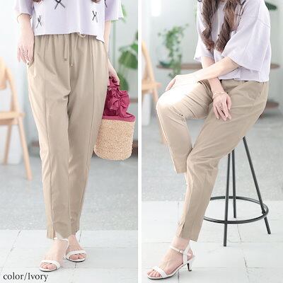 ゴールドジャパン大きいサイズレディース パンツ ズボン センタースリットストレッチテーパードパンツ ボトムス ロング テーパード ストレッチ スリット 無地 通勤 冬新作 冬服 春服 秋服 夏服 LL 2L 3L 4