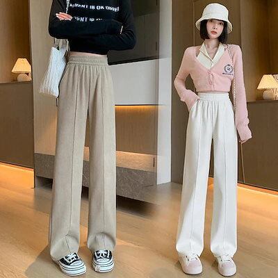 【2025年新商品登場】即? 新作 2種類厚さ ワイドパンツ 暖パンレディース 薄手厚手トレンド リブ ワイドレッグパンツ レディース 無地 シンプル 裏起毛パンツ リラックス カジュアル 脚長効果パ