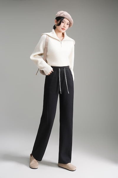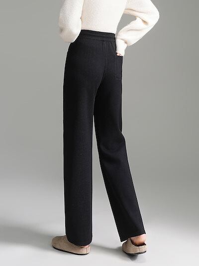 [新品到着!初回30%オフ]ウールパンツレディースワイドパンツウール混裏起毛パンツ防寒保温セミワイド40代50代60代スウェットパンツ