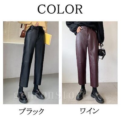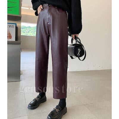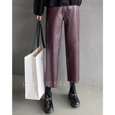 2026年初の値下げレザーパンツ レディース フェイクレザー ロングパンツ ストレート型 ワイド ゆる感 9分丈 テーパードパンツ 新品 ロング丈 PU皮 革パン 女性 通勤OL