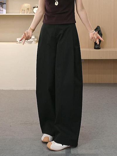 スーツパンツ トレンド サイドプリーツ ワイドパンツ 新作 ゆったり カーキ ファッション レディース ストレートパンツ A6493