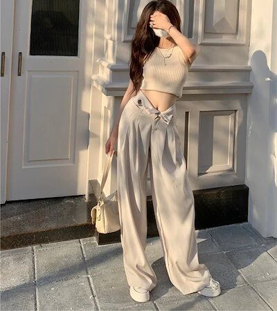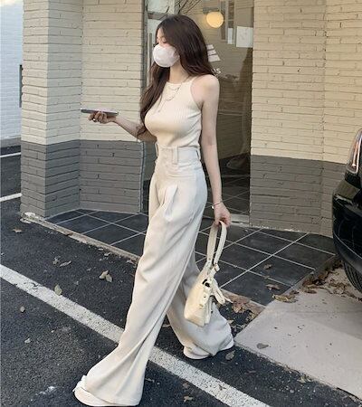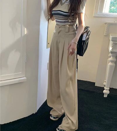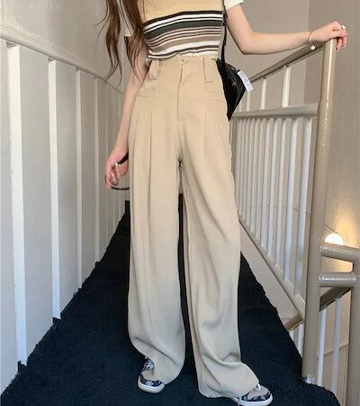スラックス レディース ワイド ハイウエスト タック ワイドレッグ ストレート カジュアル きれいめ フェミニン 通勤向け 2025 年新作