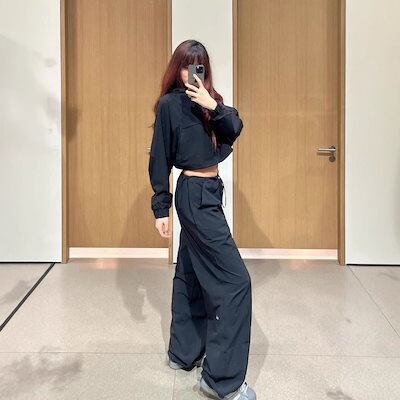 alo オーバーオール パンツ レディース 新作モデル キム・ジス同型巾着薄型ポケット速乾ワイドカジュアルパンツ50