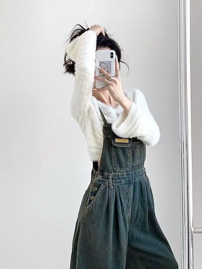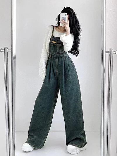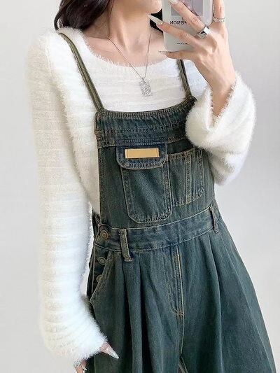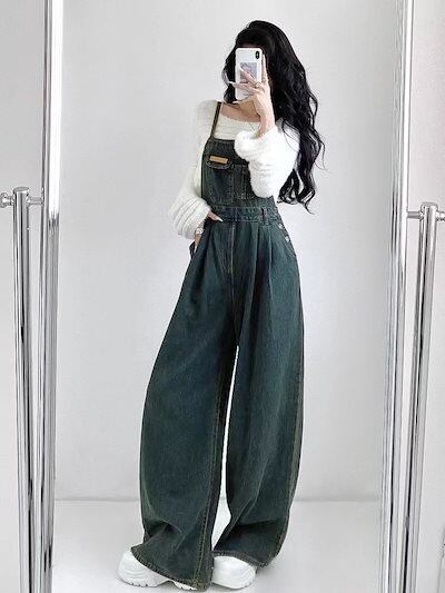 レディース カジュアル ゆったり ブルー ストレート ロングズボン 着痩せ 百掛け モップパンツ オーバーオール レトロ ジーパン デニムサロペット 新品