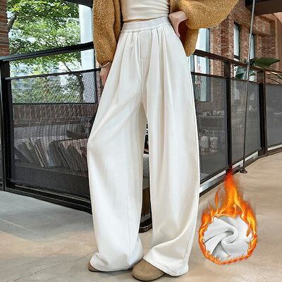 冬限定 裏フリース 裏起毛ワイドパンツ 暖かい あったか 保温 ワイドデニム デニムパンツ 秋新作 秋冬 ウエストゴム レディース ボトムス カシュアル ゆったり ハイウエスト ジーンズ 体型カバー