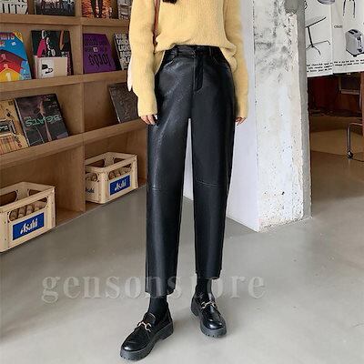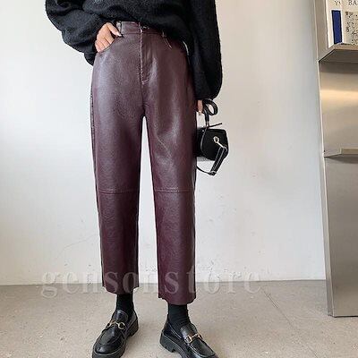 2026年初の値下げレザーパンツ レディース フェイクレザー ロングパンツ ストレート型 ワイド ゆる感 9分丈 テーパードパンツ 新品 ロング丈 PU皮 革パン 女性 通勤OL