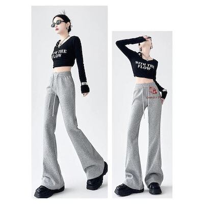[新品到着!初回30%オフ]ブーツカットパンツスウェットパンツレディーススキニーパンツ秋冬春フレアパンツベルボトム美脚美尻ストレートパンツ美脚パンツ長ズボンハイウエス