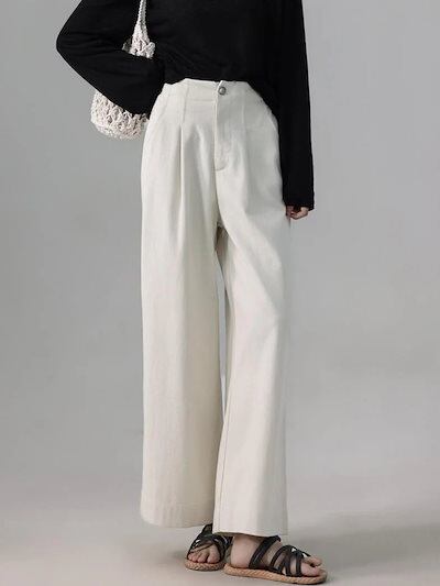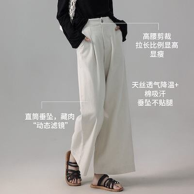 雲昌テンセル綿パンツ レディース新作 オールドマネースタイル ワイドレッグパンツ ゆったりカジュアルパンツ