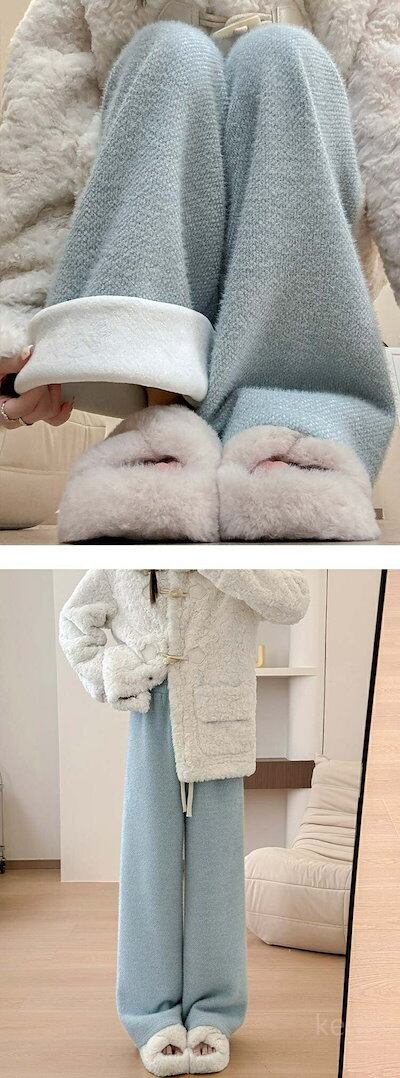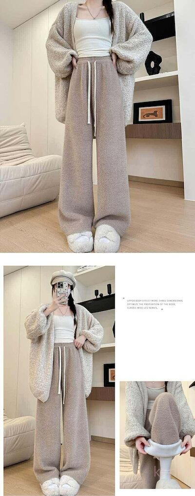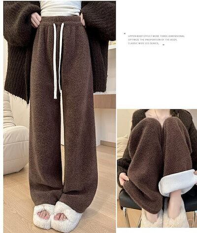 品質いいな新品 厚手 ロングパンツ ゆったり シャギー 無地 ワイドパンツ イージーパンツ 裏起毛 秋冬 ウエストゴム パンツ 裏起毛パンツ レディース