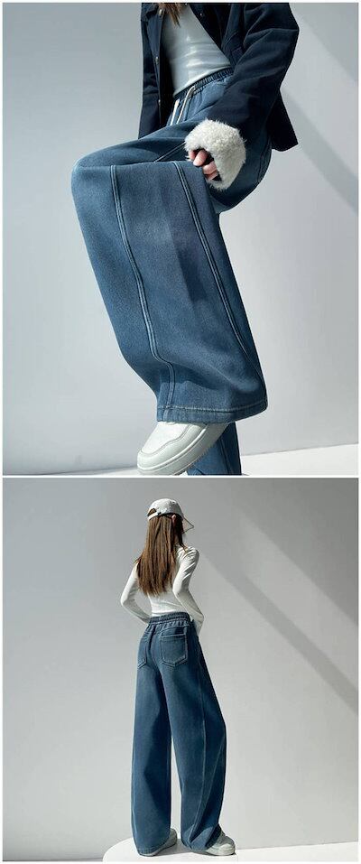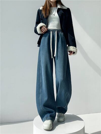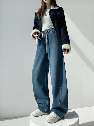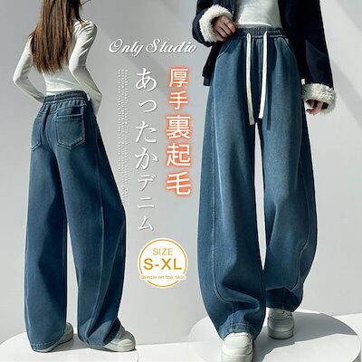 裏起毛 裏ボア デニムパンツ レディース 新作 デニム パンツ 防寒 厚手 無地 ロングパンツ ボトムス ロング ポケット 紐 デザイン感 カジュアル 秋 冬 極暖 ハイウエスト レトロ 防