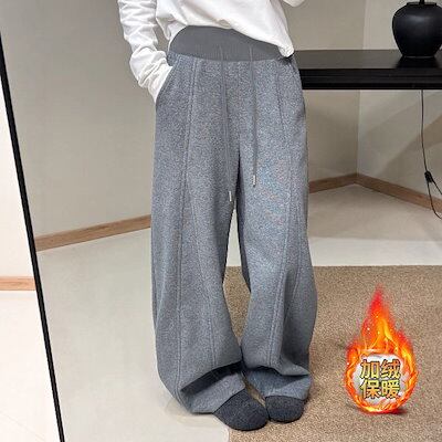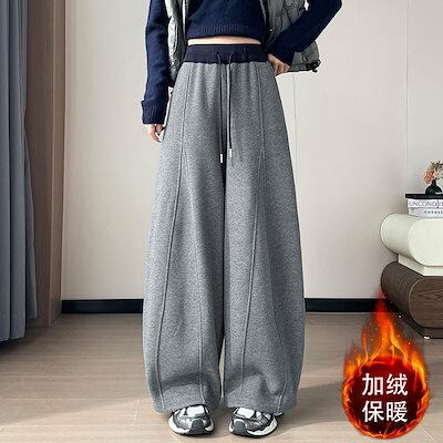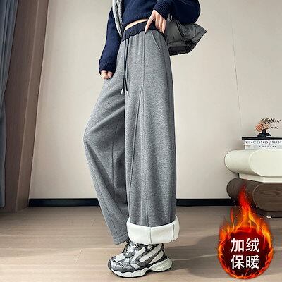 秋冬新作 フリース裏起毛 カーブドパンツ カラーコンビワイド裏起毛パンツ レディース その他 パンツ