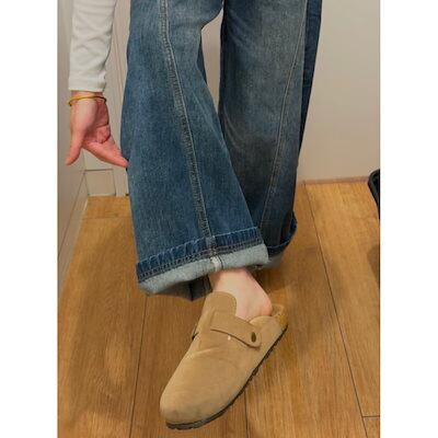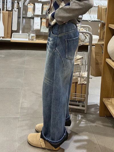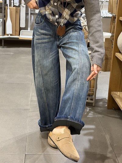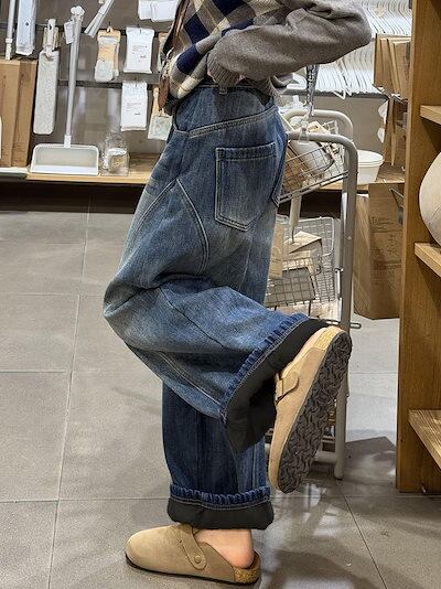 秋冬新作 ヴィンテージウォッシュ フリース裏起毛 カーブドワイドデニム裏起毛パンツ レディース その他 パンツ