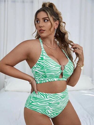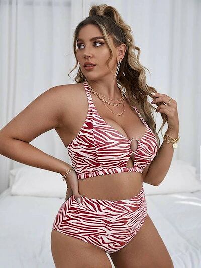 超人気,大特価 ビキニ水着 ホルターネックゼブラ柄 大きいサイズ ぽっちゃり 女の子 ワイヤーなし パッド付 レディース ハイウエスト セパレート 海 プール リゾート 可愛い かわいい セクシー 韓