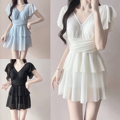 大きいサイズ スカートタイプ 水着 レディース 保守的 ワンピース ショーツ お腹カバー 痩せ見え バスト小さめ ワイヤー バストアップ 温泉 水着
