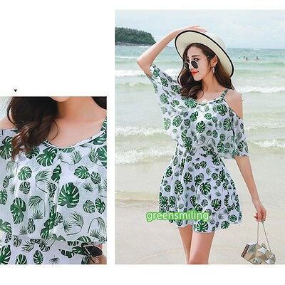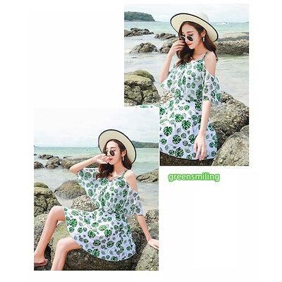 ぽっちゃり ワンピース 水着 肩見せ 体型カバー レディース 着痩せ 袖あり お腹カバー オトナ女子 ミセス フレア ショートパンツ 大きいサイズ 海 韓国風