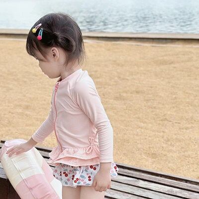 11 女の子の水着スーツクイックドライスプリット水着スーツセットベビー水着スイートの長袖の水着ドレス甘くてトレンディ