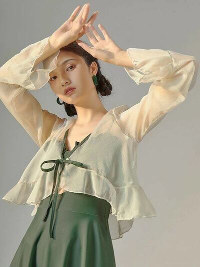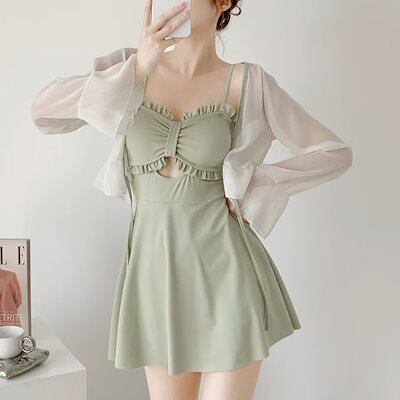 2点セット ワンピース水着 レディース 水着 袖あり 体型カバー トップス付き ノンワイヤー セクシー ワンピース 着痩せ 盛れる 2L 3L グリーン 韓国 可愛い かわいい 温泉 ビーチ プール