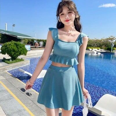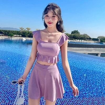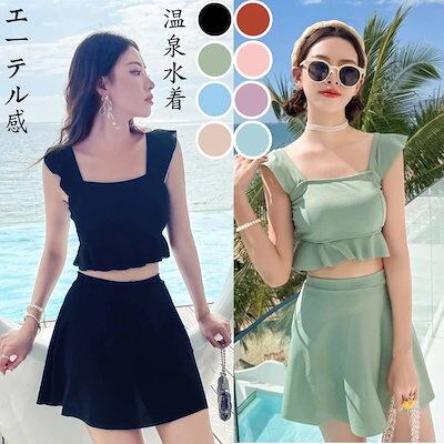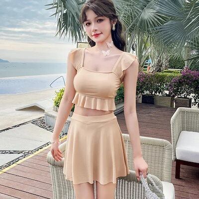 25新作二点セット セパレート水着 無地 可愛い 着痩せスリム見え レディース 水着 韓国ファッション ゆったり 高校生 中学生 大きいサイズ 紫外線対策