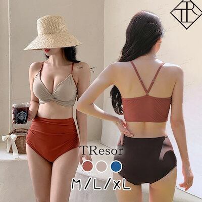 【即納】水着 レディース 水着 体型カバー セパレートビキニ ビキニ 人気 盛れる セクシー リゾート 20代 30代 40代 ママ オトナ女子 小胸 胸 盛り プール 海 温泉 バイカラー Vネック
