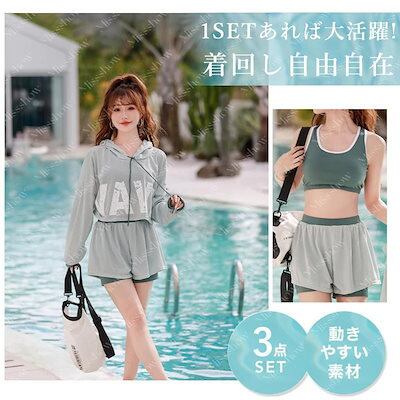 1+1 即納 水着 レディース 体型カバー 高校生 中学生 3点セット スポーティー 水着 ラッシュガード セット 韓国 女子 10代 20代 30代 可愛い おしゃれ 母の日 母の日ギフト