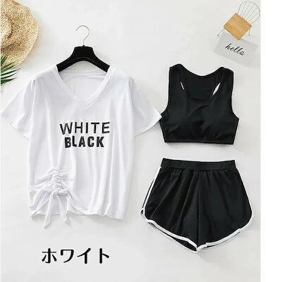 新作 水着 レディース カジュアル 高校生 中学生 10代 20代 ビキニ スポーティー Tシャツ 3点セット 体型カバー ホワイト ブラック ゆったり かわいい セクシー