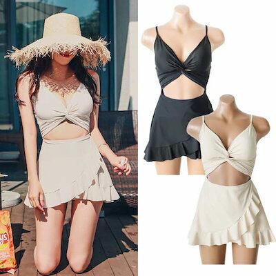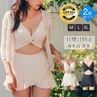 水着 レディース 2点セット スカート スイムドレス キャミソール ストラップ 絞りパッド付 体型カバー UVカット 海水浴 潜水