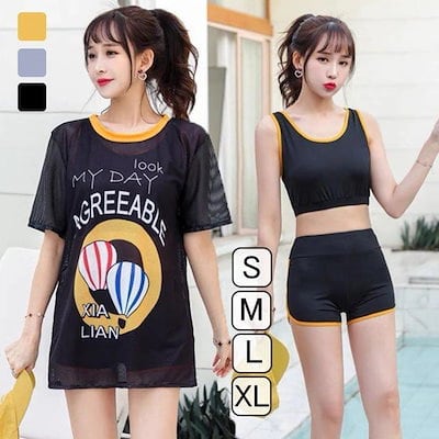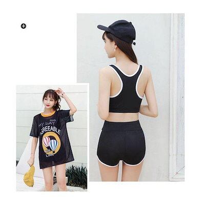 水着 レディース 3点セット 夏 小胸 バンドゥ パレオ 日焼け防止 パッド付き 大人気 上品 体型カバー UVカット ママ水着 海水浴 潜水 韓国風 可愛い 20代 30代 40