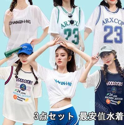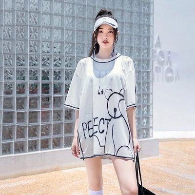 ゆったり ラッシュガード UVカット体型カバー着痩せ タンキニ スポーティー Tシャツスポーツ レディース ビキニ ワンピース 3点セット ス 水着 韓国ファッション可愛い 大きいサイズ