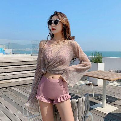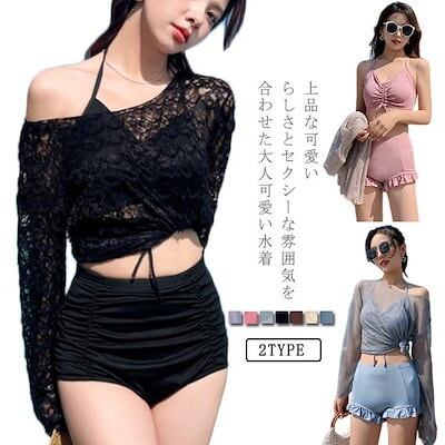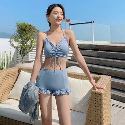 水着 レディース 体型カバー ビキニ 3点セット UVカット 大人 みずぎ 盛れる 万能流行感 パンツ きれいめ 露出控えめ タンキニ 脚長効