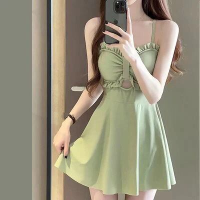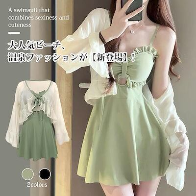 【3日出荷】水着 レディース ワンピース 体型カバー 可愛い 2点セット セクシー 大きいサイズ ハイウエスト セクシー 大人 韓国 無地 ビーチウェア 肌守り おしゃれ 海水浴 場リゾート 温泉 旅