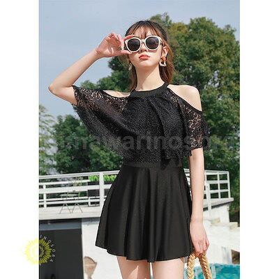 水着新作 レディース ワンピース 大きいサイズ 体型カバー 着痩せ ママ水着新作 フレア 胸元 お腹 お尻 太ももカバー シンプル オトナ女子 可愛い お洒落