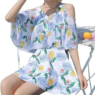 急速出荷水着 レディース 体型カバー 2点セット 花柄 みずぎ ママ 上下セット 大きいサイズ 20代 30代 40代 50代 おしゃれ 水陸両用