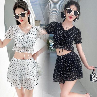 【3日出荷】水着 高校生 中学生 レディース 2点セット プール 花柄 可愛い 体型カバー 大きいサイズ 母 おしゃれ セパレート リゾート ママ水着 温泉