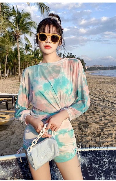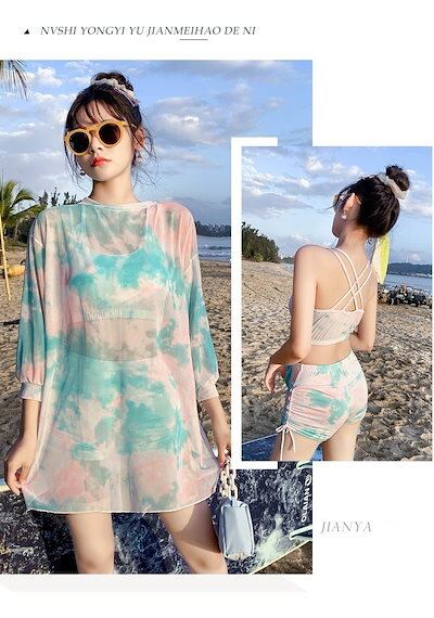 【3日出荷】水着 レディース 大人気 水着セットアップ 三点セット UVカット水着 体型カバー着痩せ 韓国 可愛い ゆったりシュガード保守 紫外線対策 大きいサイズ