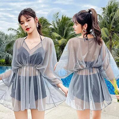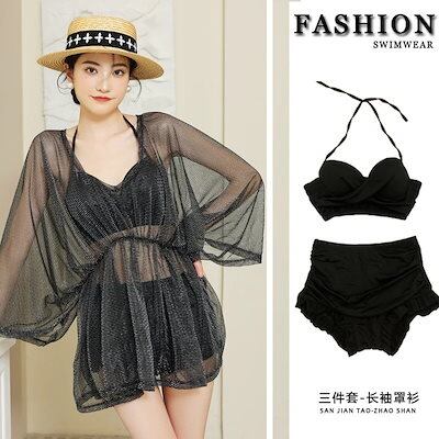 【3日出荷】水着 レディース 3点セット UVカット体型カバー着痩せ 韓国ファッション可愛い タンキニ ラッシュガード キャミ大きいサイズ 水着セット